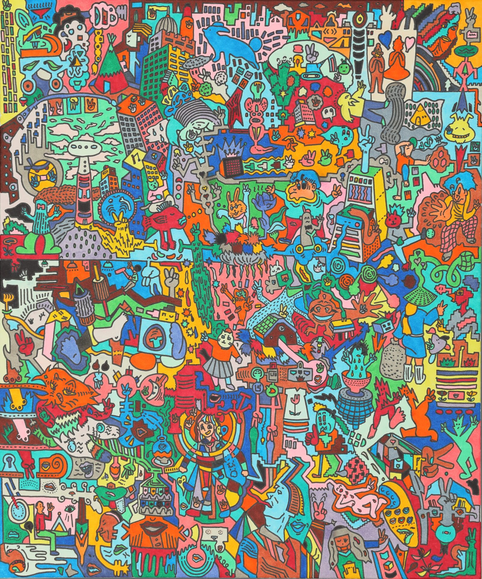 1977年生まれ。彼が真っ白いキャンバスに表現するのは、0.03から0.7mmまでのペンで描く唯一無二の個性豊かなキャラクター達。それぞれ表情や格好が違い、画面の中で踊っているように表現される。