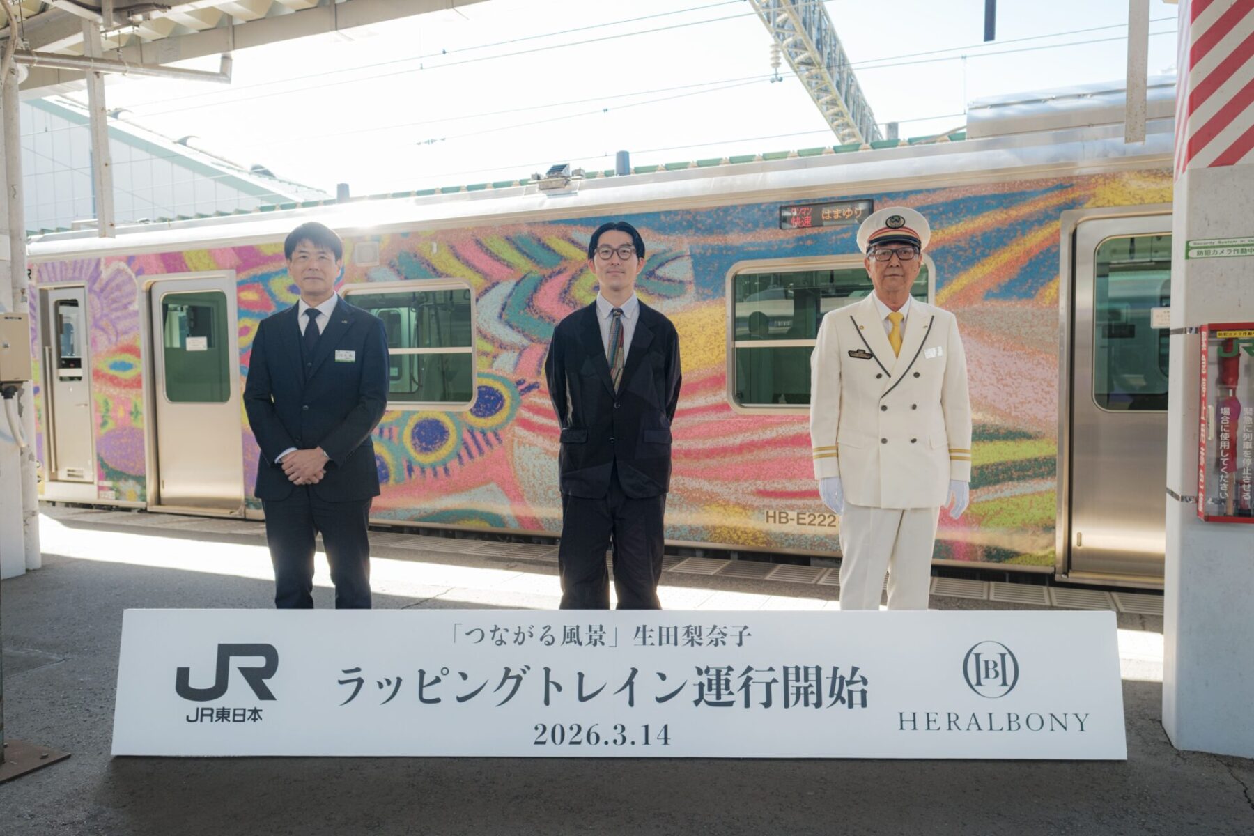株式会社ヘラルボニー(本社:岩手県盛岡市、代表取締役 Co-CEO:松田 崇弥、松田 文登、以下「ヘラルボニー」)は、JR東日本盛岡支社と共創し、ヘラルボニーが主催する国際アートアワード「HERALBONY ART Prize2025」でJR東日本賞を受賞した作家・生田梨奈子氏の作品「つながる風景」で彩ったラッピング列車を2026年3月14日(土)よりJR東北本線・釜石線で運行開始いたしました。